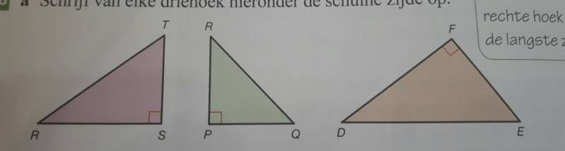 5) A. Schrijf van elke driehoek hieronder de schuine zijde op.